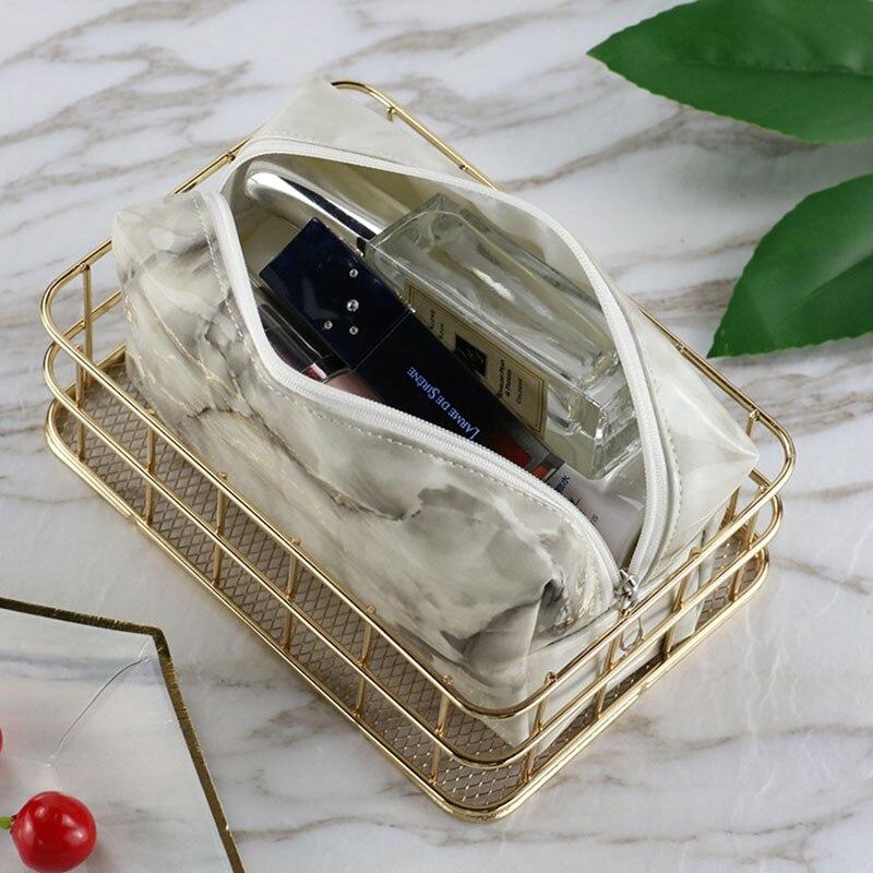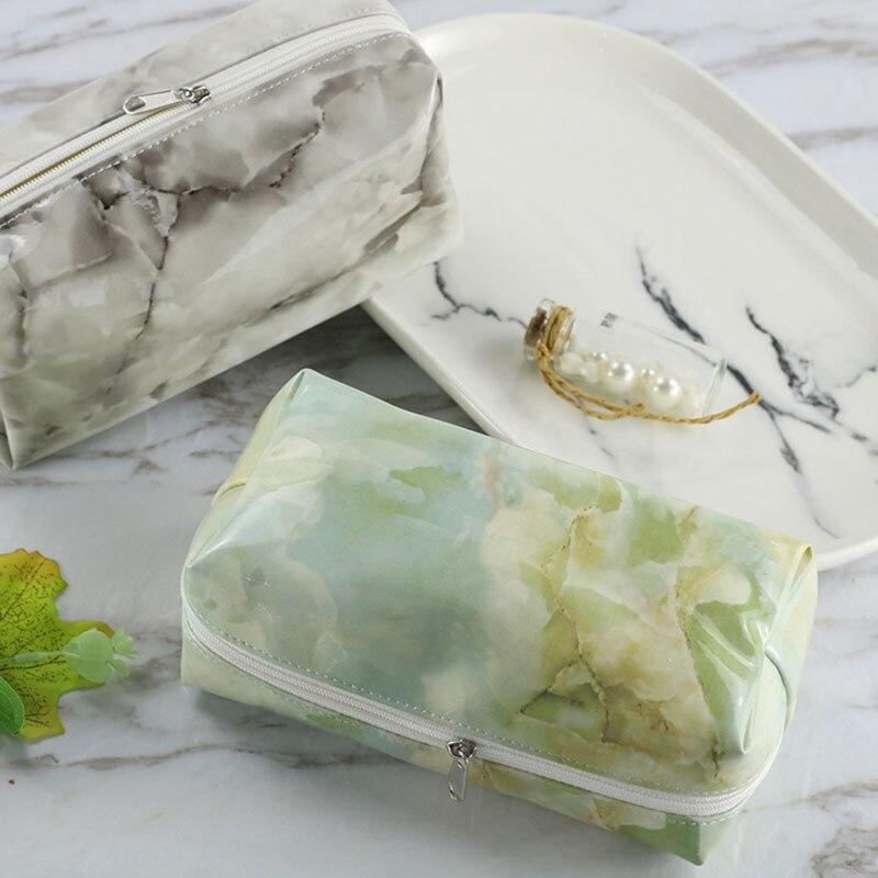 O design desta necessaire de maquilhagem é verdadeiramente especial. Graças ao padrão marmoreado, esta necessaire destaca-se realmente entre as demais. É extremamente prática e está disponível em várias cores diferentes. Naturalmente, estas cores são inspiradas nas que encontramos em objetos ou azulejos de mármore. Além disso, é possível guardar até os pincéis de maquilhagem. Para além do batom, da base e de outros cosméticos, há espaço suficiente para alguns dos seus pincéis.
