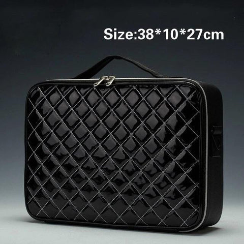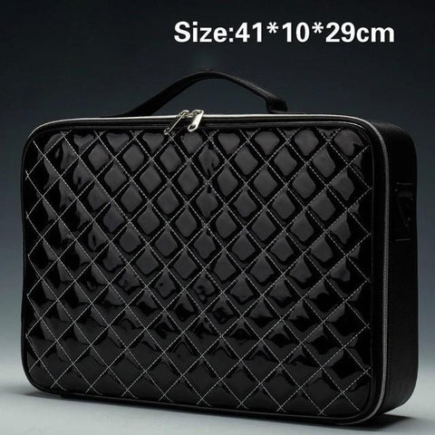 Não procure mais — a bolsa de maquilhagem profissional é a escolha perfeita! Este design único combina estilo e funcionalidade, com uma alça de ombro que deixa as mãos livres para se movimentar. Os bolsos interiores e exteriores são ideais para guardar tudo o que precisa, enquanto as faixas elásticas mantêm os pincéis e outros produtos estáveis e seguros. Fabricada em pele PU, esta bolsa de maquilhagem é durável e fácil de limpar.