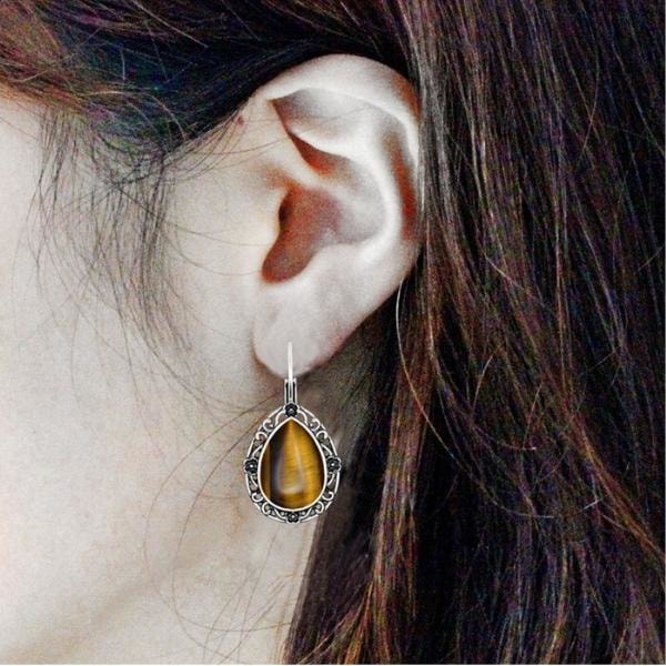 Estes brincos em forma de gota de água combinam o encanto intemporal de uma joia clássica com as propriedades protetoras do olho de tigre. Esquece as preocupações e encontra-te a ti próprio.