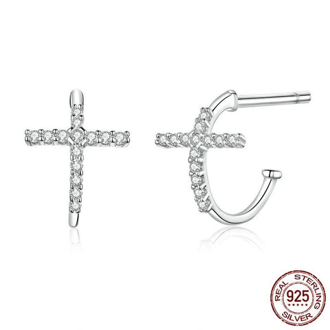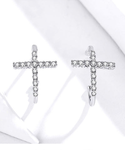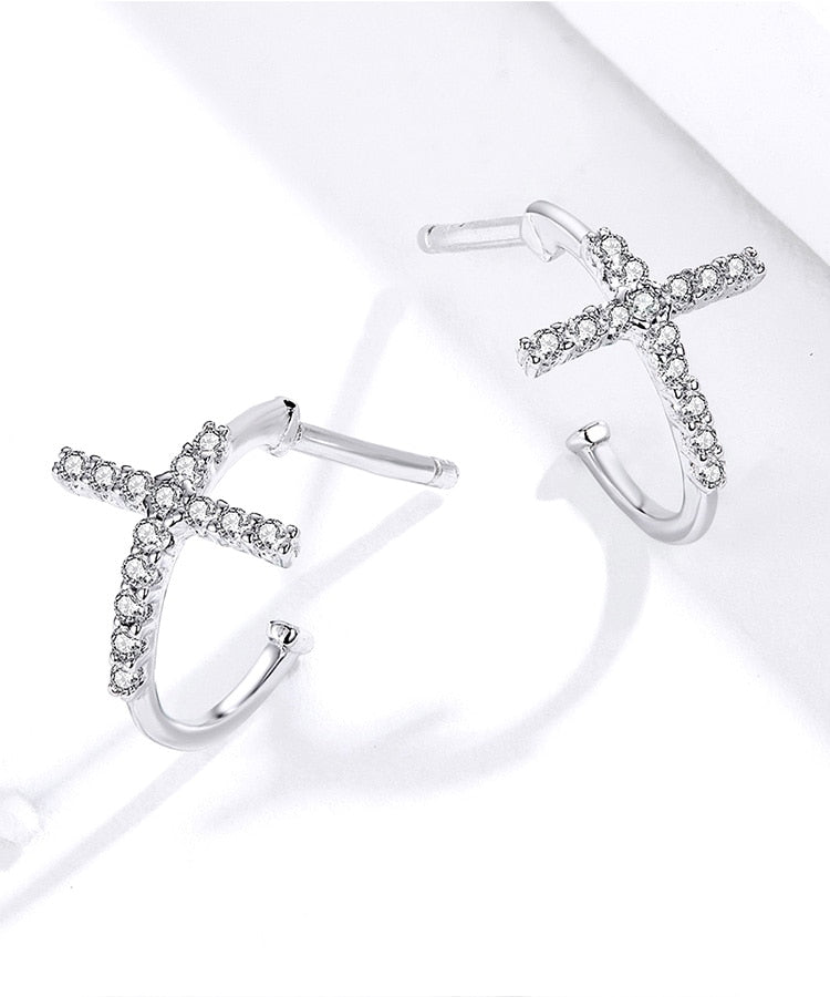 Brincos de Cruz em Prata Aidot para Mulheres – Extremamente Elegantes