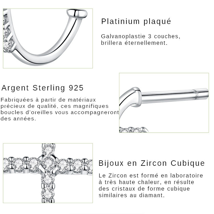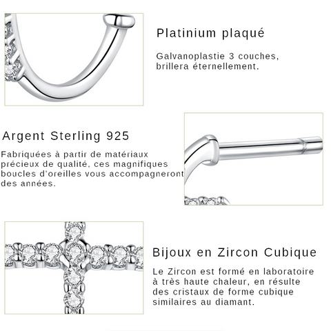Deixe-se encantar por este deslumbrante par de brincos de cruz em prata de lei 925. Estes maravilhosos brincos são adornados com pedras de zircónia cintilantes, conferindo-lhes um toque extra de esplendor.