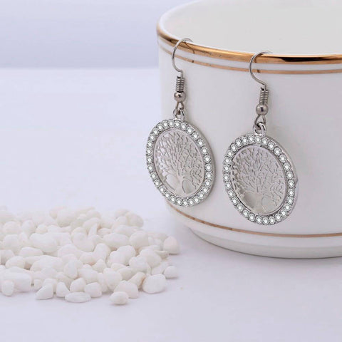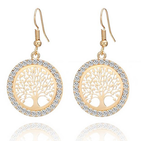 Brincos pendentes com Árvore da Vida muito elegantes: dourado ou prateado.