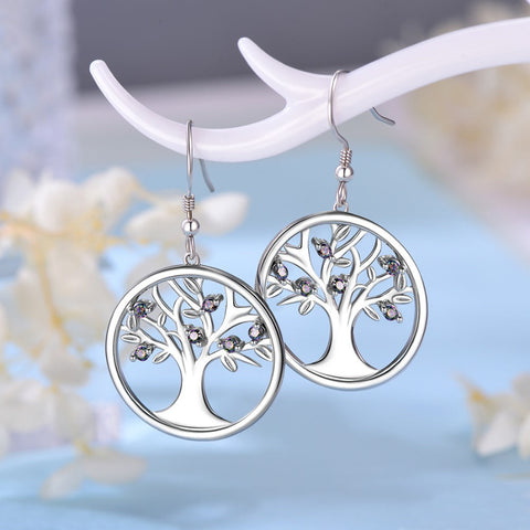 Estes brincos da árvore da vida estão na moda e são feitos em prata de lei 925. Como pode ver, as folhas da árvore estão adornadas com pequenos cristais de topázio arco-íris, garantindo o máximo de estilo!