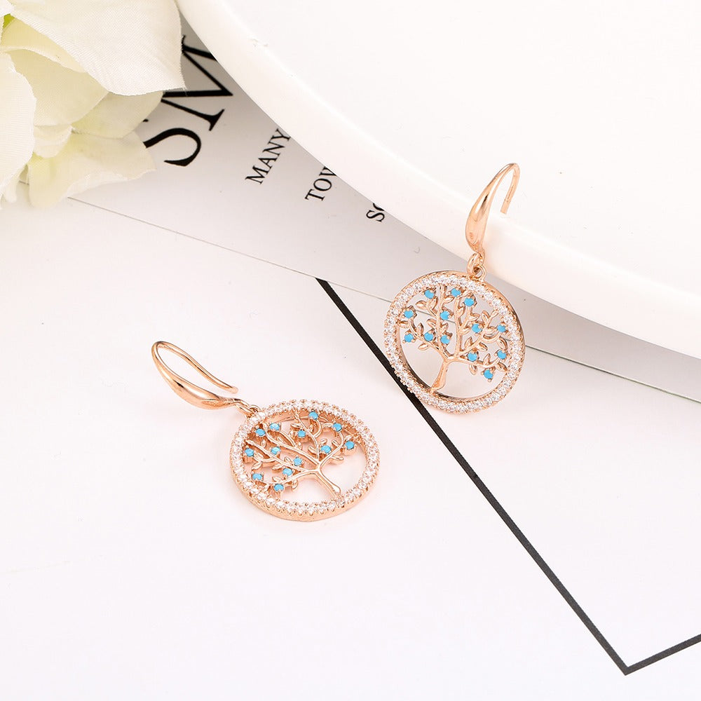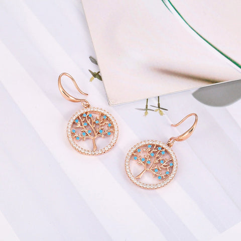Belos brincos em forma de Árvore da Vida em ouro rosa, com um design elegante.