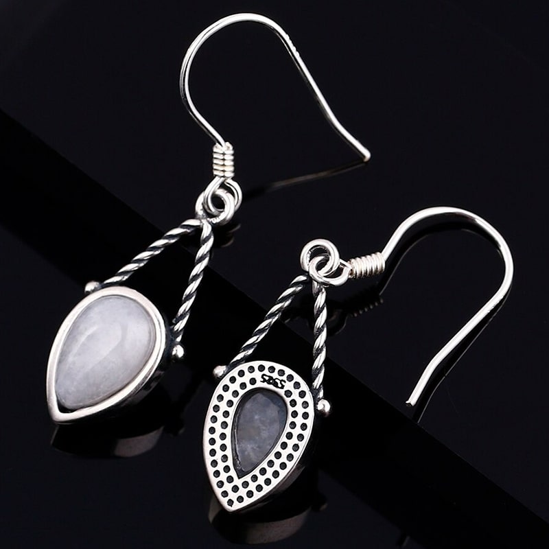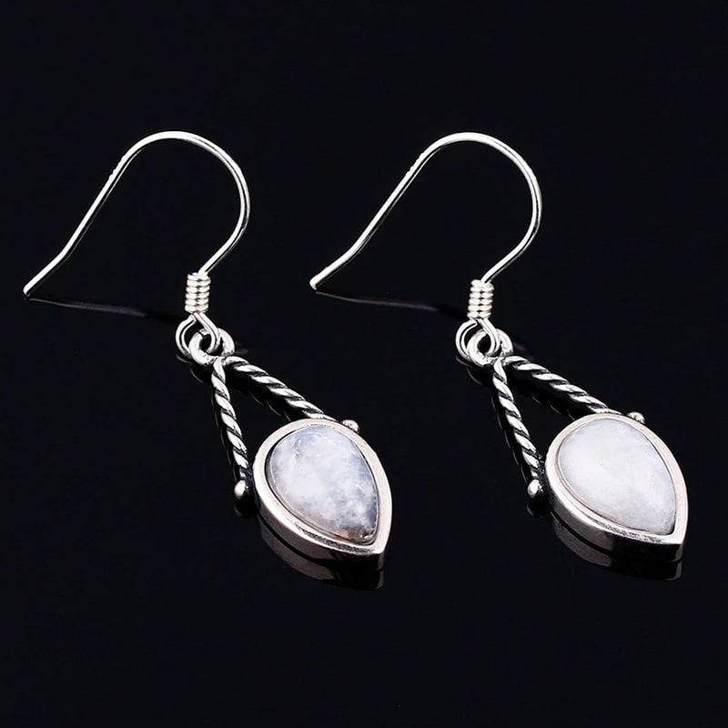Com pedras em forma de gota d'água, estes brincos naturais com pedra da lua genuína farão você parecer ainda mais bonita. As pedras são autênticas – uma oportunidade perfeita para aproveitar os seus benefícios! Um acessório indispensável para a sua coleção de joias.