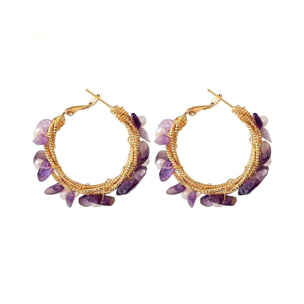 Estes deslumbrantes brincos boémios com ametista trazem-lhe comunicação e equilíbrio. A ametista acalma e estimula a mente, ajuda a melhorar a concentração, reforça a memória e a motivação.