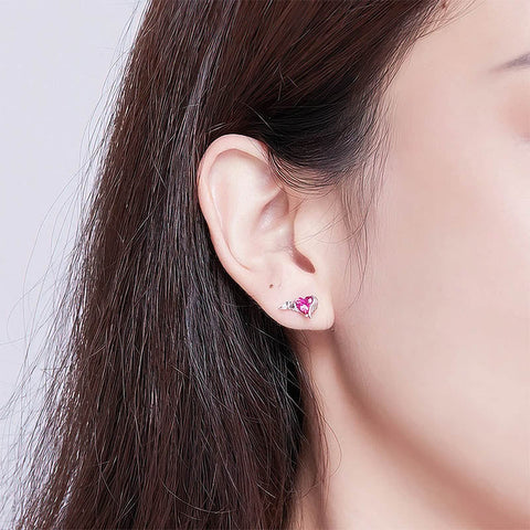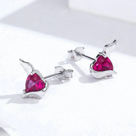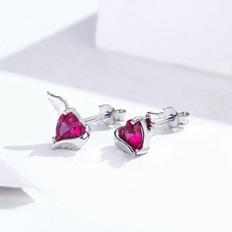 Deixa-te seduzir pelo delicado equilíbrio destes brincos com Anjo e coração vermelho.