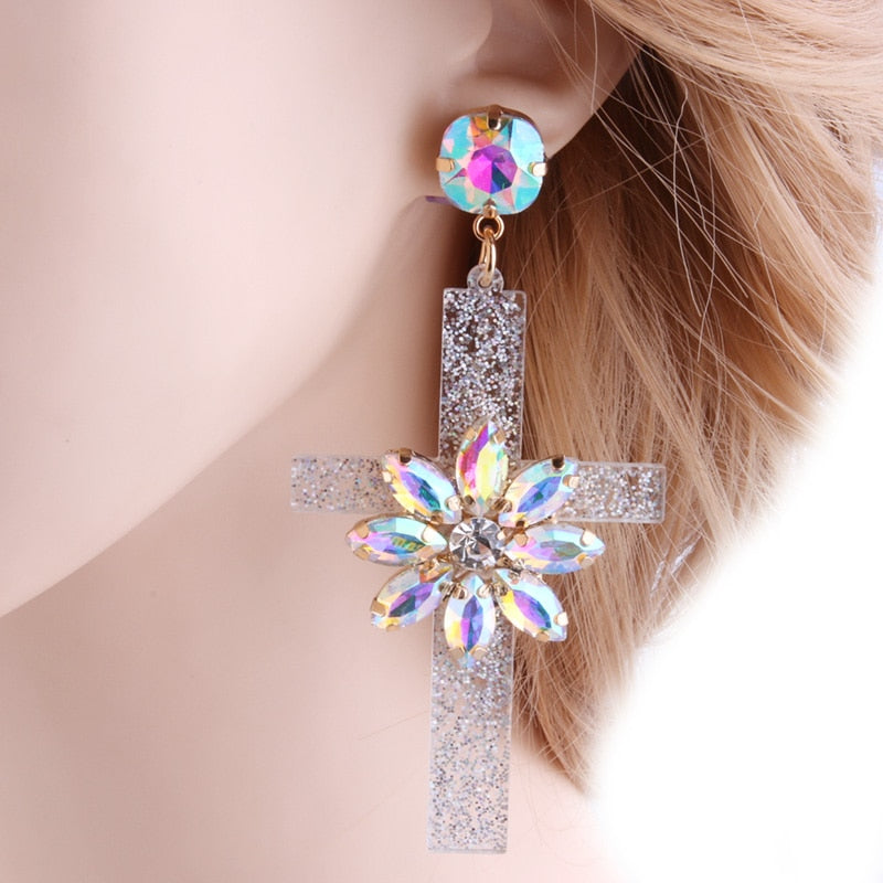 Este belo par de brincos de cruz para mulher é feito de resina cristalina e é o toque cristão perfeito para qualquer conjunto. Estes brincos de alta qualidade são um lembrete de que a nossa vida deve exaltar o nome de Jesus.