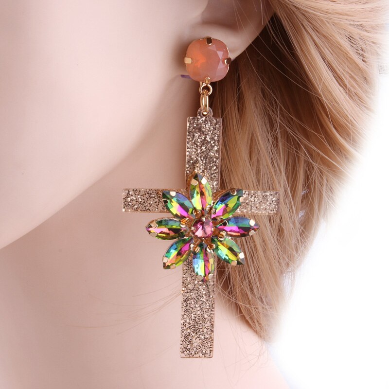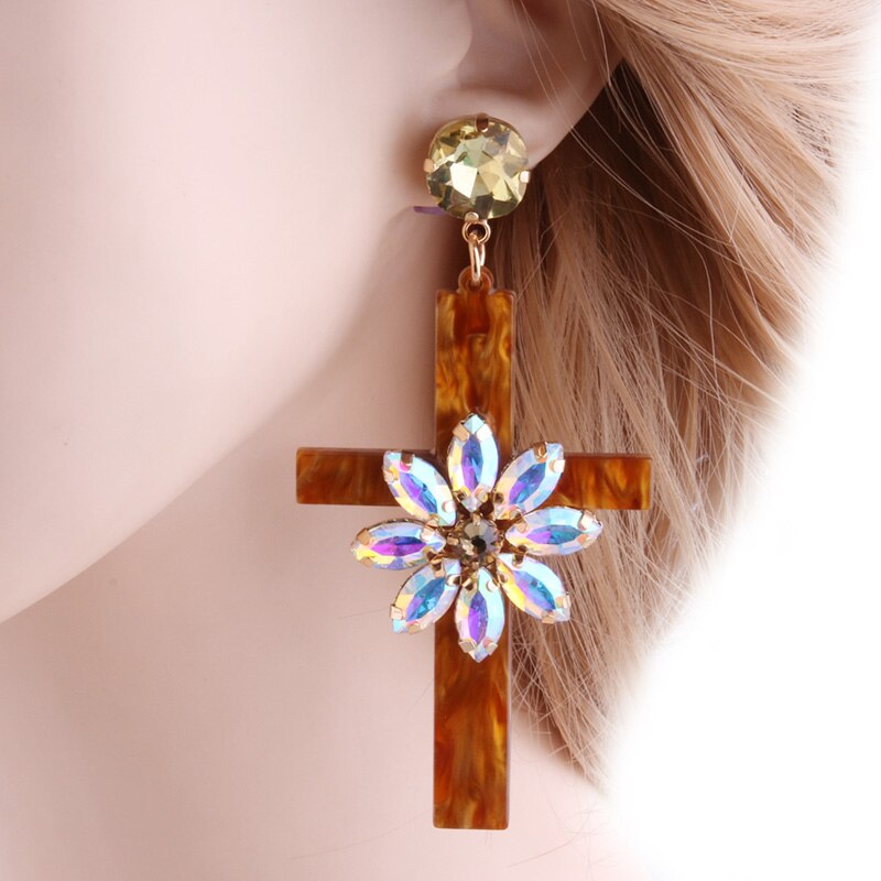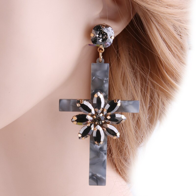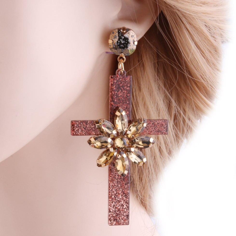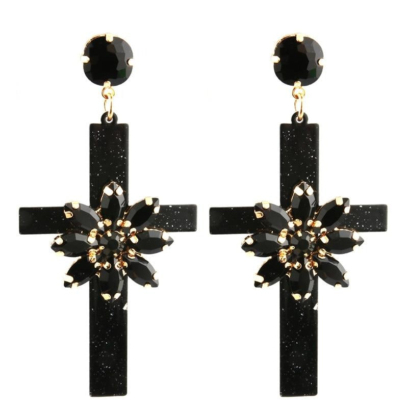 Estes brincos de cruz femininos apresentam uma linda flor com detalhes precisos.