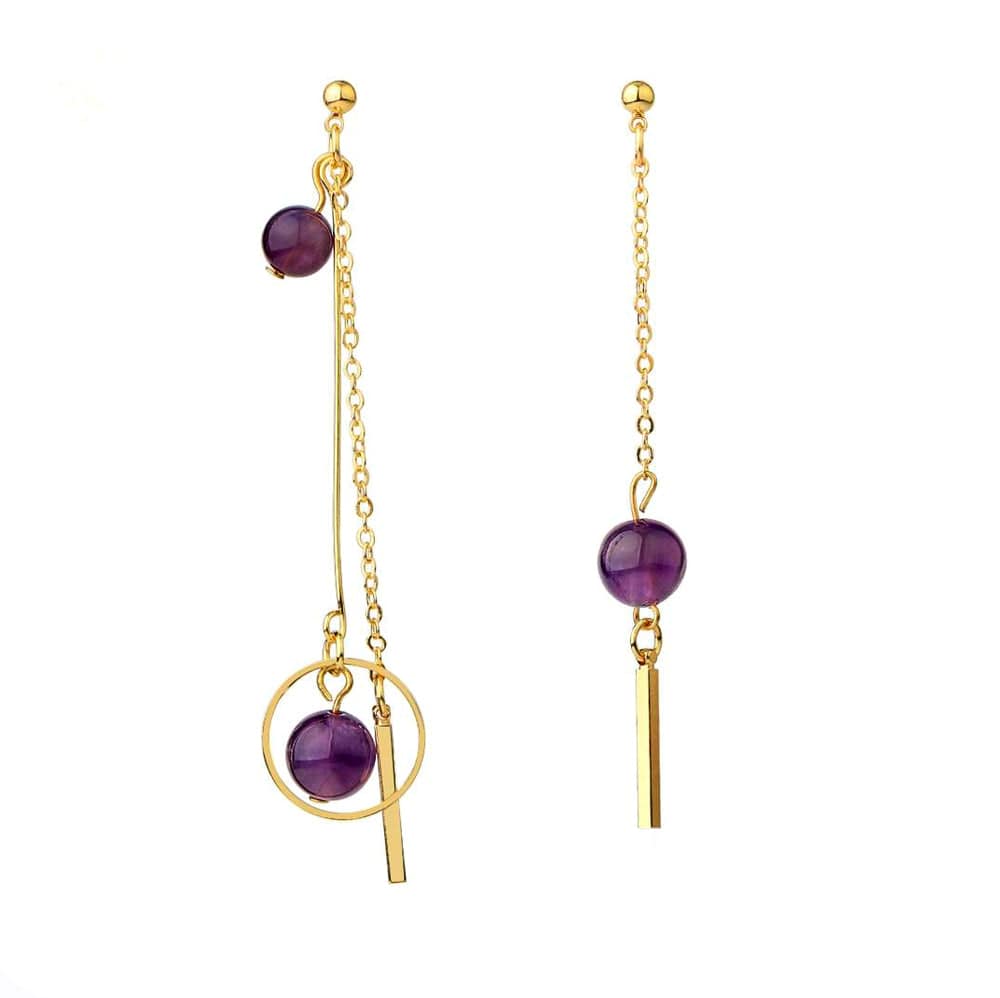 Estes deslumbrantes brincos dourados com ametista trazem-lhe sabedoria e força. A ametista é frequentemente utilizada na meditação, ajudando no relaxamento e na intuição.