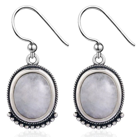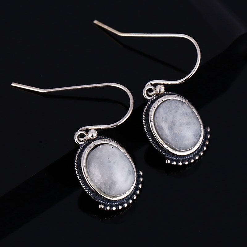 Brincos excecionais com pedras naturais de pedra da lua.