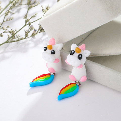 Adoráveis brincos divertidos de unicórnio que parecem saídos diretamente de um desenho animado.