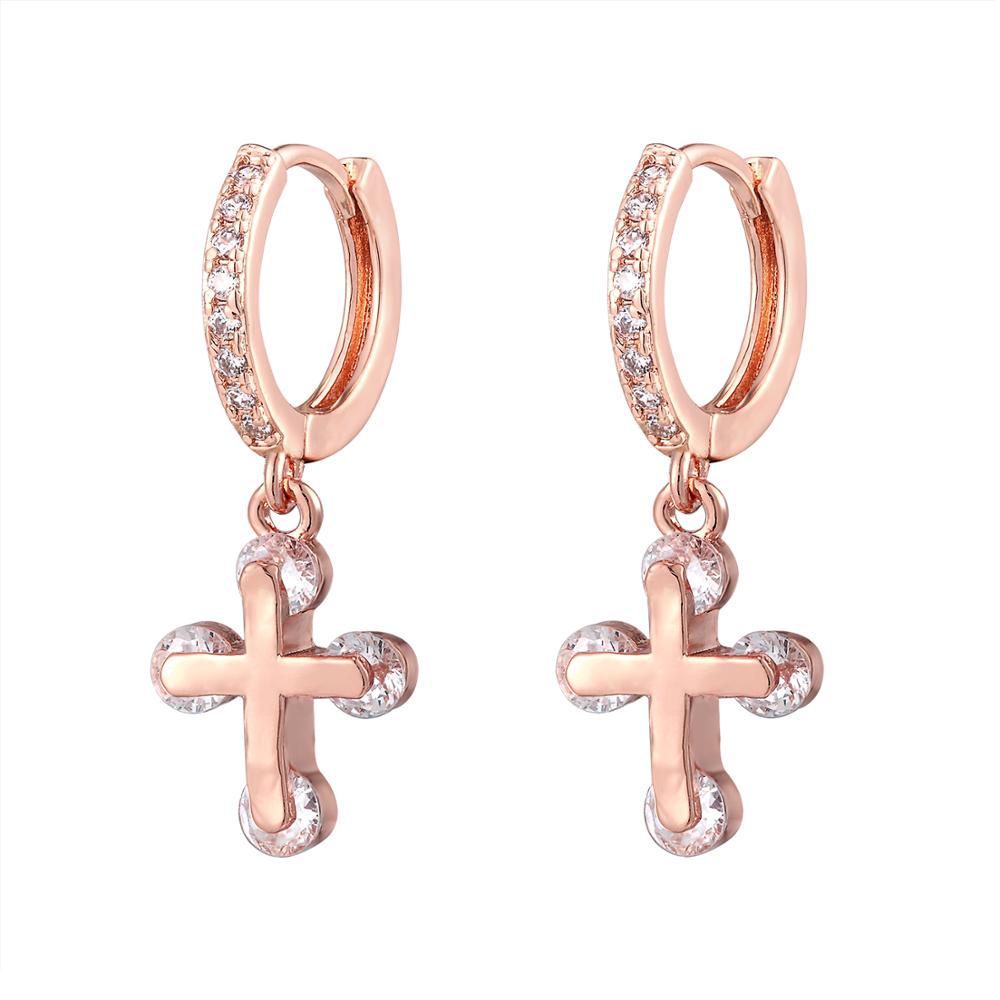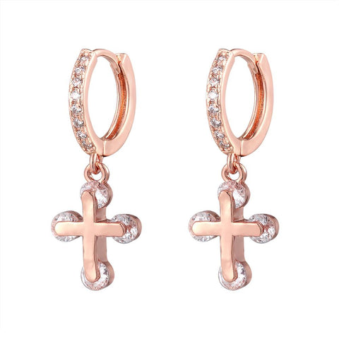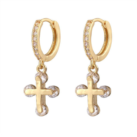 - Brincos femininos com cruz de alta qualidade com pedras de zircónio douradas.