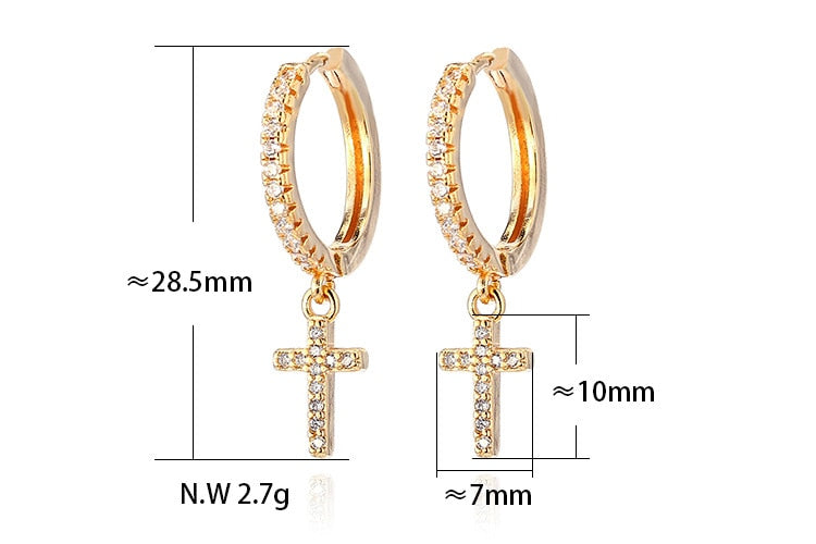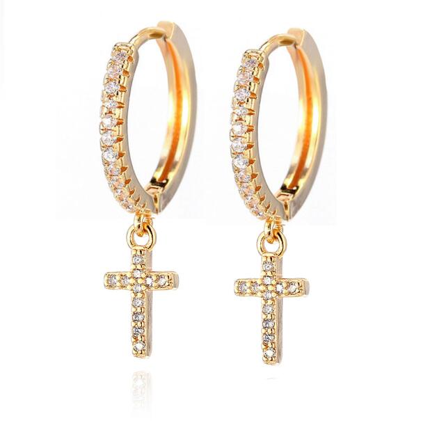 Brincos femininos de cruz banhados a ouro de alta qualidade.