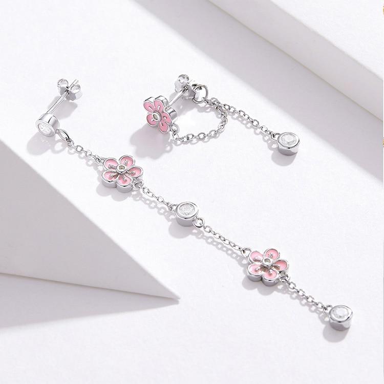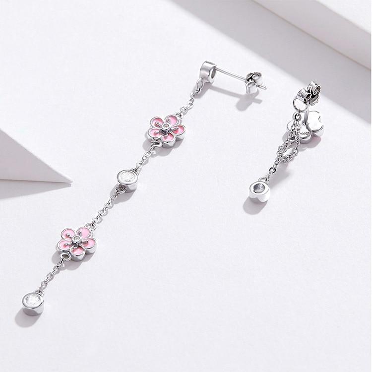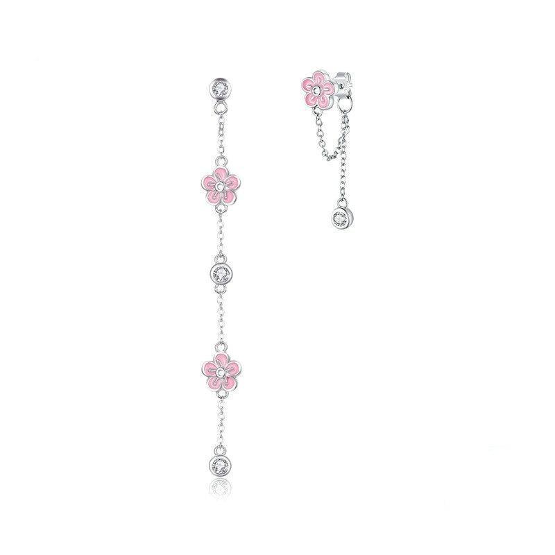 Estas joias são feitas de prata maciça de alta qualidade. Cada corrente apresenta flores cor-de-rosa deslumbrantes e pérolas, adornadas com pequenos diamantes. O resultado é uma elegância perfeita e refinada que realça a sua presença feminina.