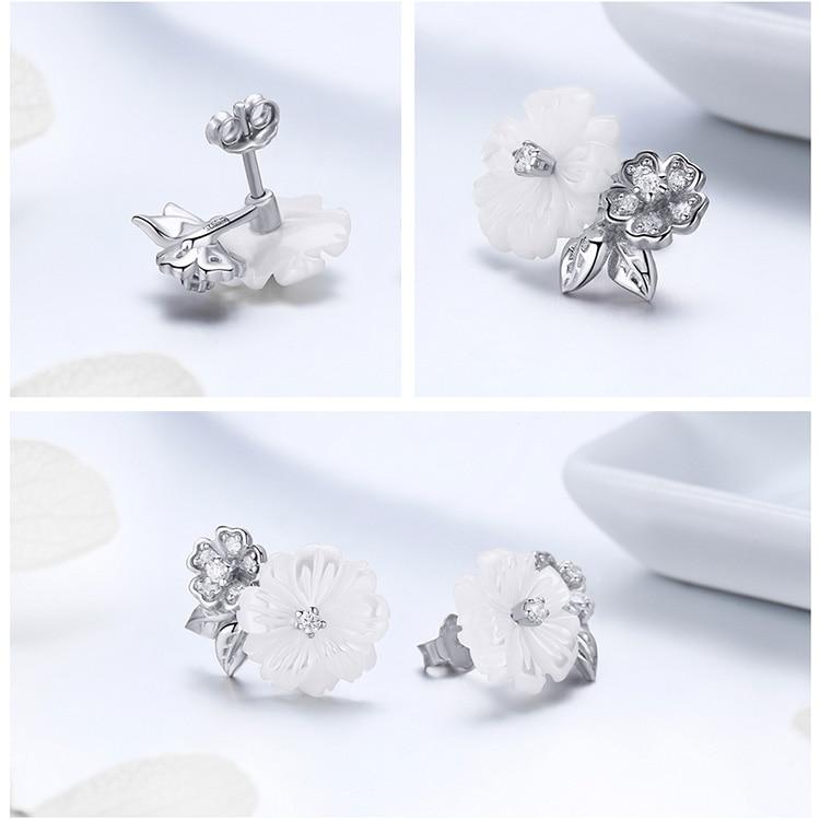 Cada brinco é feito de prata durável, que proporciona uma sensação única e confortável contra a pele. Além disso, as montagens são adornadas com padrões florais de pérolas cintilantes, conferindo-lhes um aspeto luxuoso e autêntico.