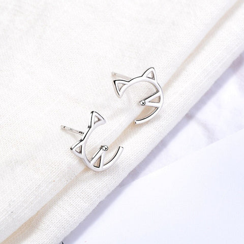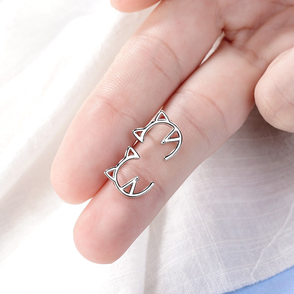 Faça uma declaração com os brincos de gato com meia cabeça! Estes deslumbrantes brincos de prata são inspirados em gatos e apresentam duas metades de gato com um design único, adicionando um toque felino aos seus looks. Vai ficar mais deslumbrante do que nunca enquanto conquista o mundo com estes brincos chamativos.