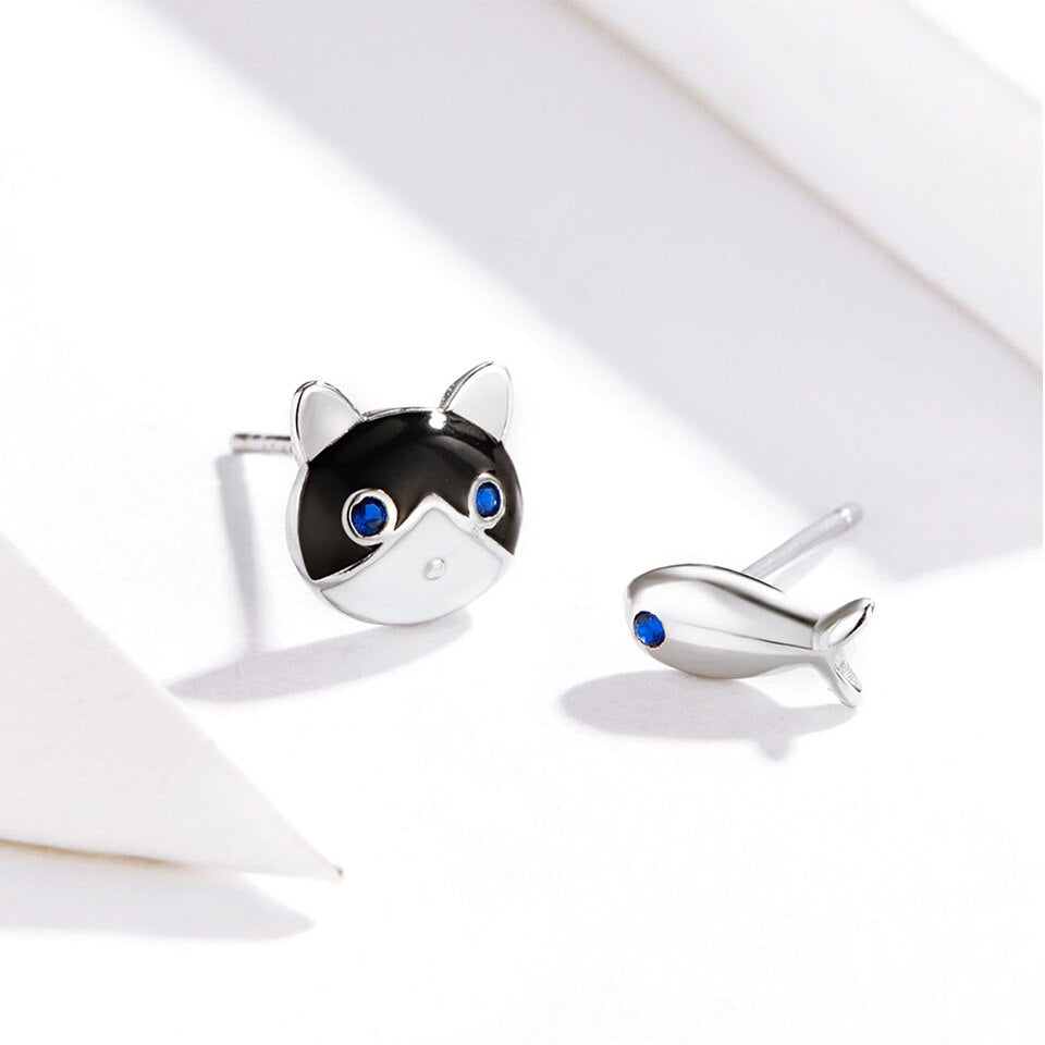 Mostra a tua personalidade com estes brincos divertidos. Um brinco tem a cabeça de um gato e o outro a cabeça de um peixe.