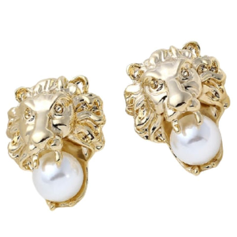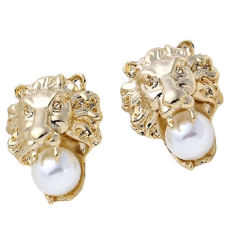 Um lindo par de brincos de leão vintage! Um par na moda que destaca o caráter forte e poderoso do teu animal favorito. A pérola acrescenta um toque de feminilidade e suavidade a este conjunto, que certamente vai agradar! Adequado tanto para o dia como para a noite. Confortável de usar.