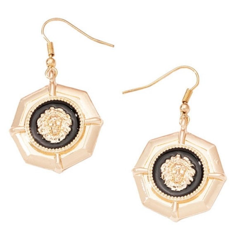 Um par deslumbrante de brincos de leão para mulheres! Simples e impactante, este par apresenta a cabeça de um leão rodeada por detalhes pretos, conferindo um visual elegante aos brincos. Podem ser usados de dia ou à noite e combinam com vários estilos de roupa. Fáceis de colocar e confortáveis de usar.