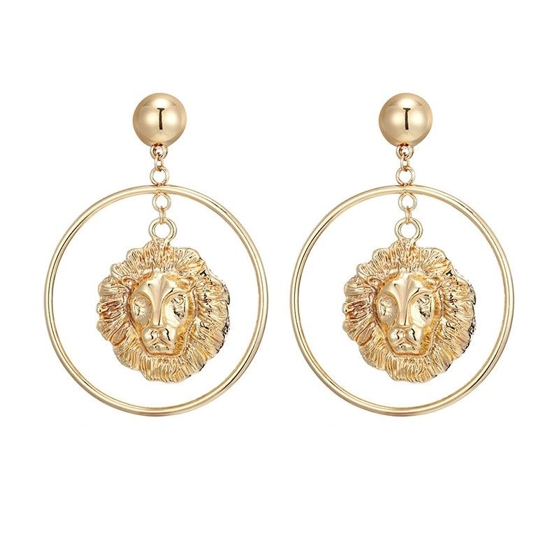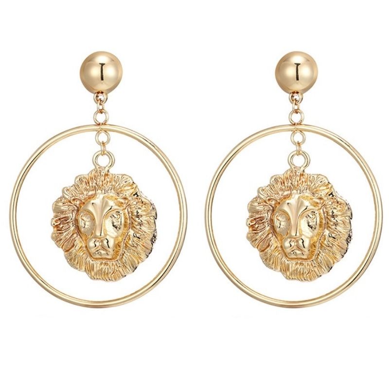 Magnífico par de brincos redondos com leão! Um acessório elegante e sofisticado. Um par perfeito, com uma proposta harmoniosa de uma pérola a envolver a cabeça do leão no centro do aro — tudo com um design leve e nada agressivo, para um visual requintado. Cor dourada única que combina com muitos dos teus looks preferidos.