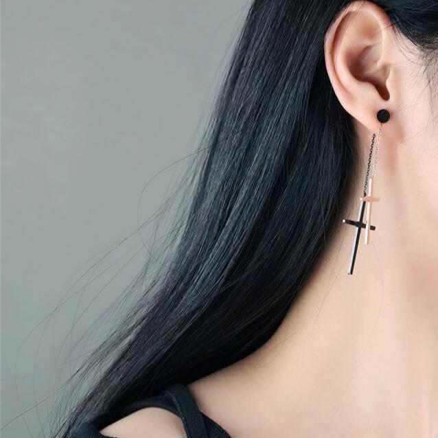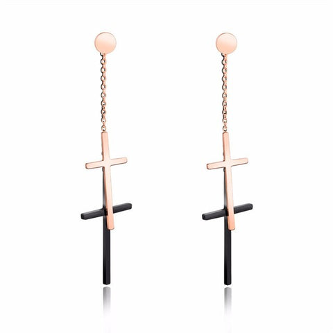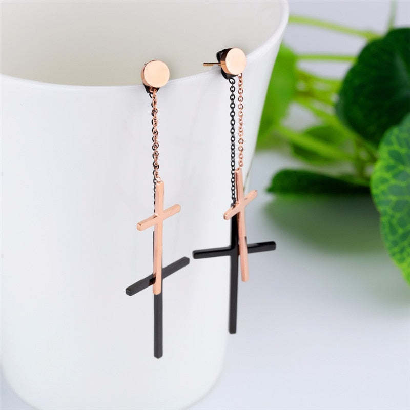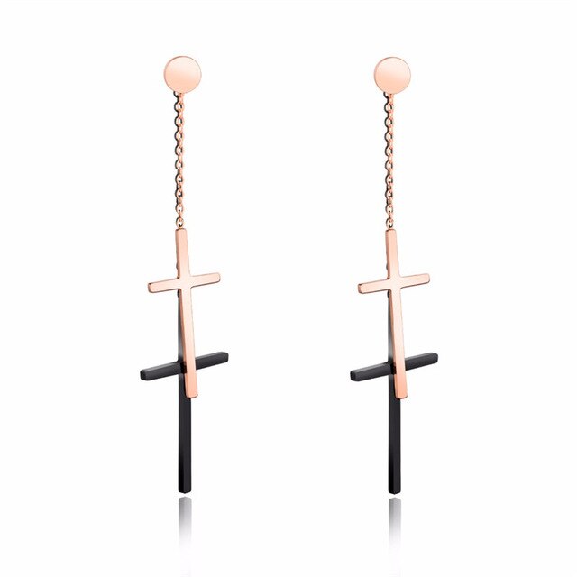 Carrega contigo todo o amor e proteção de Cristo com estes brincos de cruz pendentes de alta qualidade.