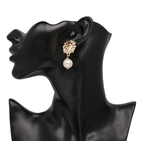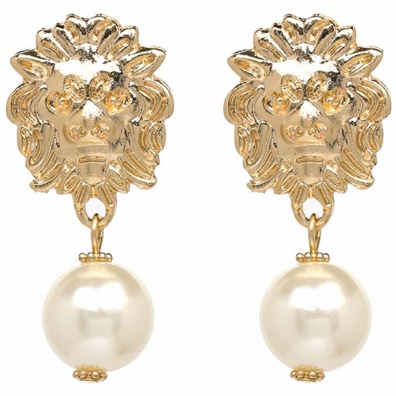 Deslumbrantes brincos pendentes de leão com pérolas cintilantes!
