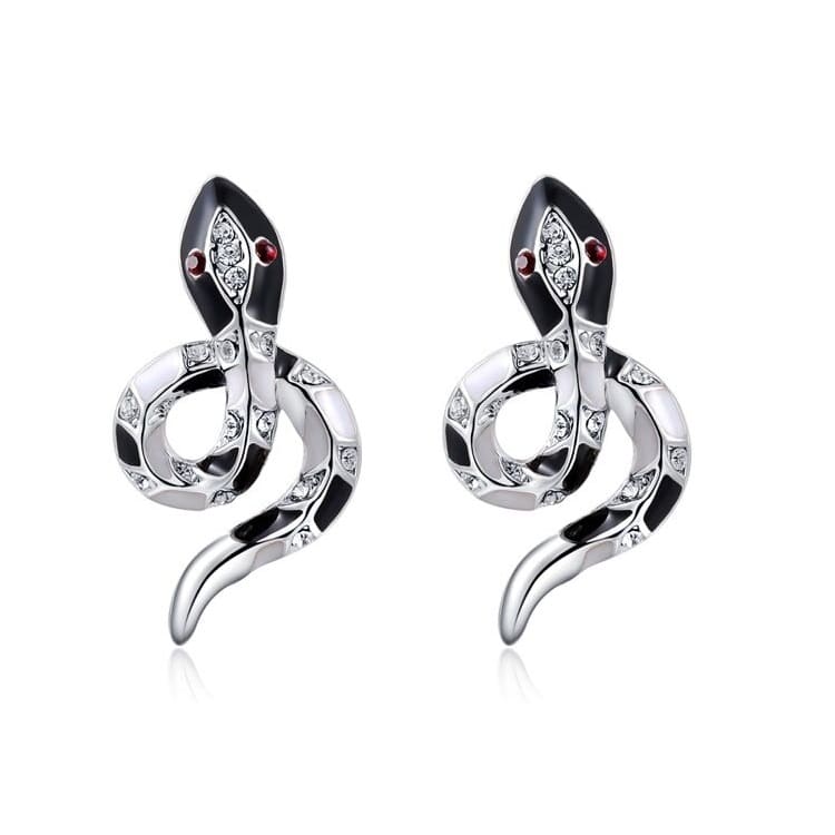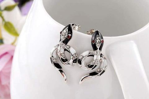 Estes brincos de serpente agradam às mulheres que apreciam a subtileza. Apresentam um estilo simples mas sofisticado, que combina facilmente com qualquer look. A forma de serpente adornada com pedras confere um toque de fantasia à peça. Além disso, a combinação de preto e prateado acrescenta um toque de estilo a este brinco magnífico.