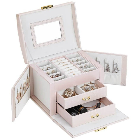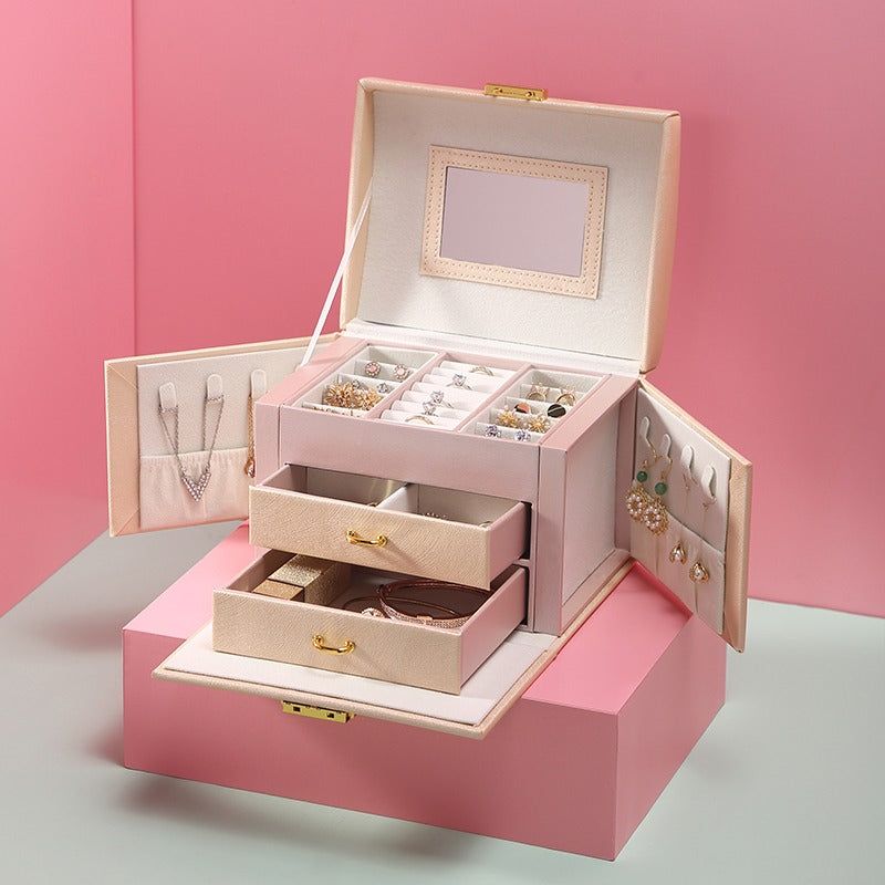 Excelente caixa de joias de grande capacidade, disponível em preto ou branco.