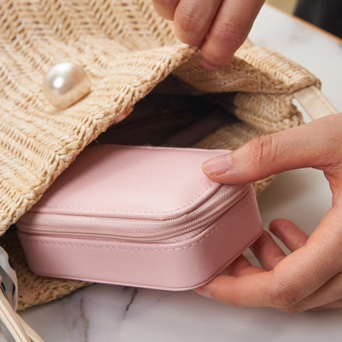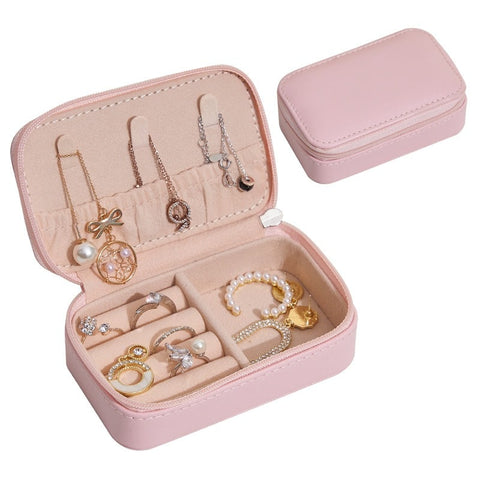 Bonita pequena caixa de joias de viagem para crianças, disponível em 2 cores.