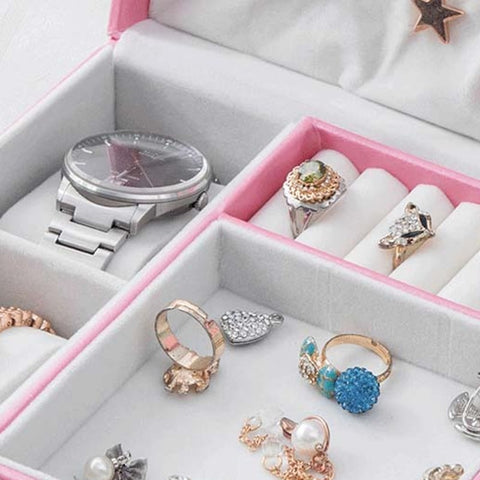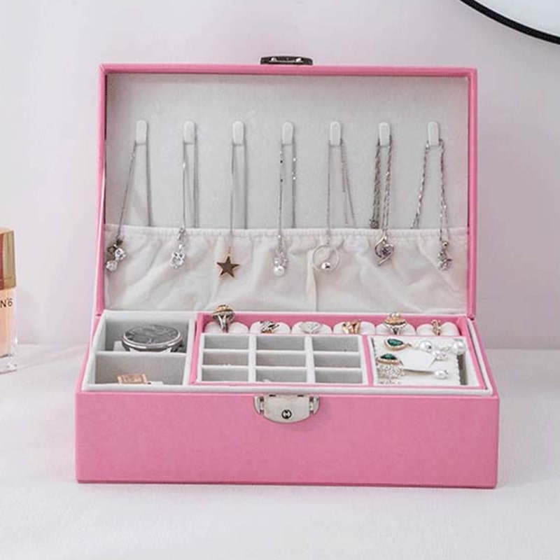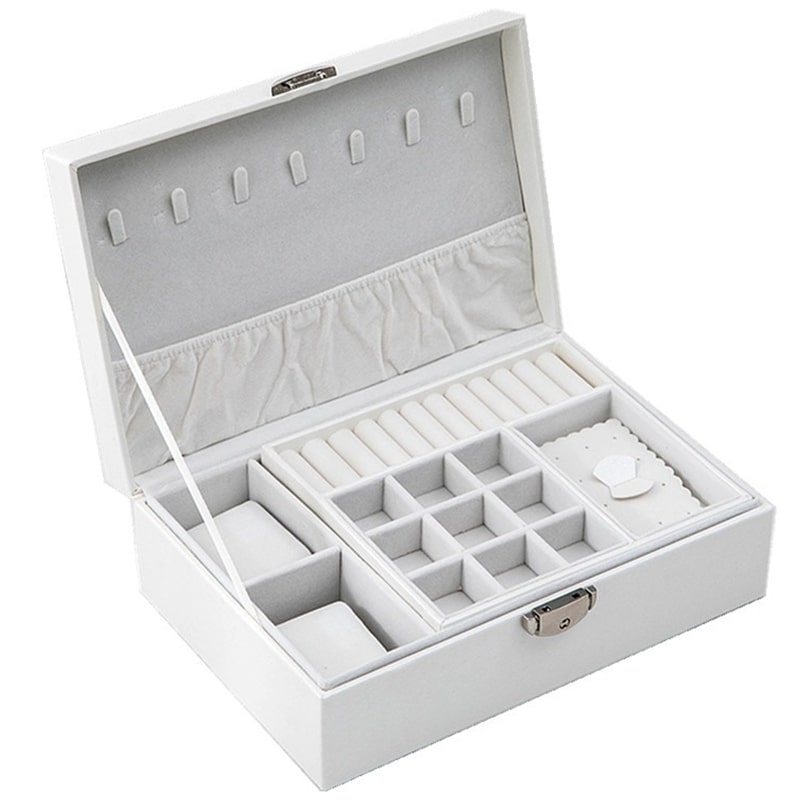 Esta caixa de joias tradicional oferece todo o espaço de armazenamento que precisa para a sua coleção de joias. Está disponível em 3 cores para agradar ao maior número possível de pessoas.