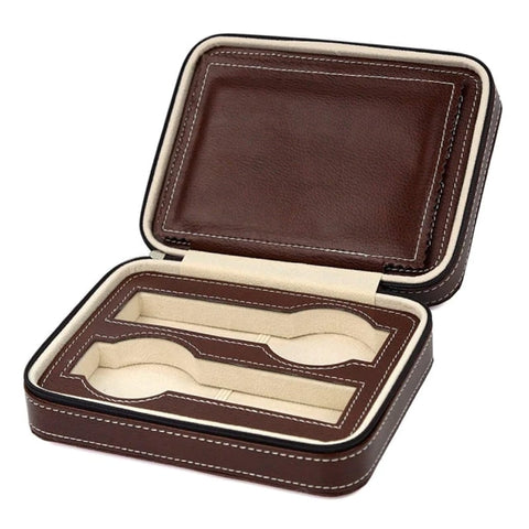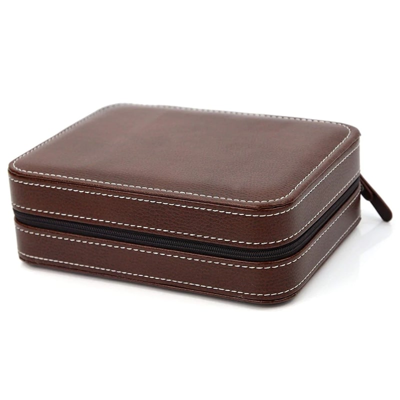 Organize a sua coleção de relógios com estilo com esta caixa de viagem que acomoda até 4 relógios. Este modelo é leve e prático para todos os tipos de viagem.