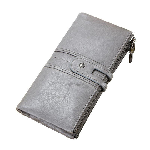 Carteira de alta qualidade que combina estilo vintage com funcionalidade. Disponível em três cores – cinzento, vermelho e verde – esta carteira oferece amplo espaço para cartões, notas e moedas.