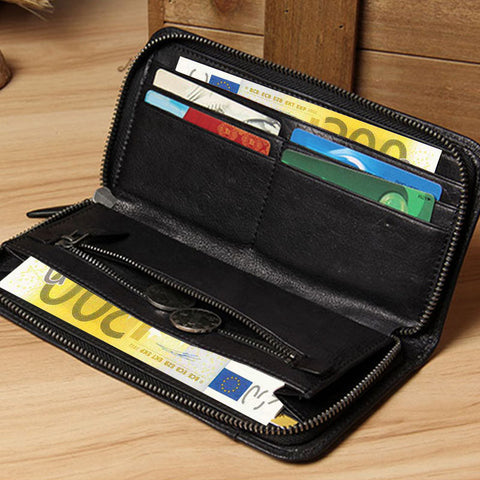 Carteira clássica preta feita de couro durável. Oferece amplo espaço para os seus itens do dia a dia.