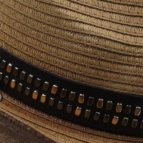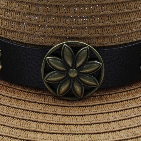 O estilo dos chapéus de cowboy antigos está presente aqui. A sua curvatura confere-lhe um visual do velho oeste. A tira de couro com flores não diminui o seu charme.