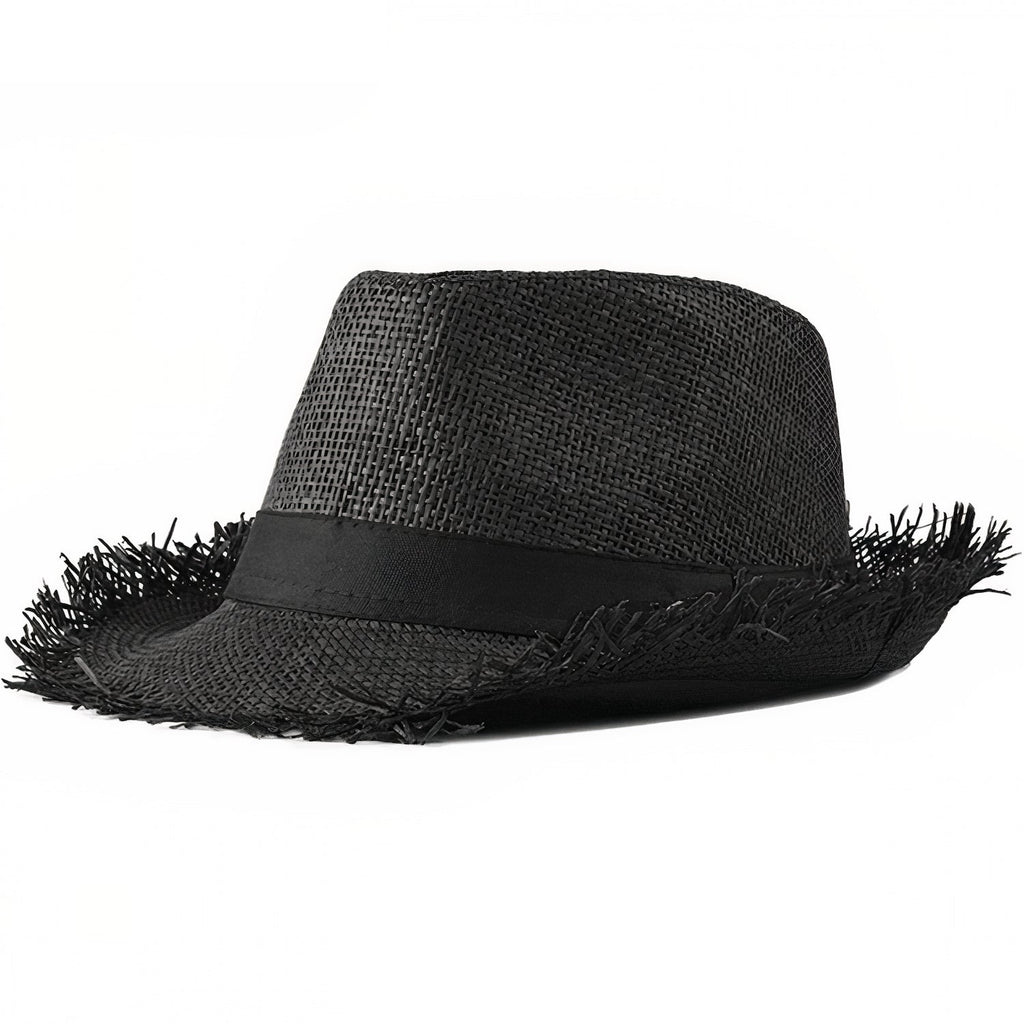 Este chapéu de palha com estilo de dançarino em formato Trilby é ideal para aproveitar o verão ensolarado da melhor forma possível. A aba não estruturada confere um toque descontraído que combina perfeitamente com um tema de férias ao sol. Embora os chapéus Trilby sejam frequentemente usados por homens, também as mulheres se têm encantado por este formato icónico. Graças à sua cor preta, é discreto e é o chapéu perfeito para um look casual e elegante.