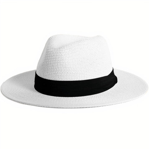 Aqui está um chapéu panamá estilo Trilby para o verão. O seu tecido panamá em preto e branco faz dele um clássico no guarda-roupa masculino. Perfeito para um look elegante ou para complementar qualquer conjunto, a palha natural é respirável e leve, sendo uma escolha ideal para os dias quentes de verão.