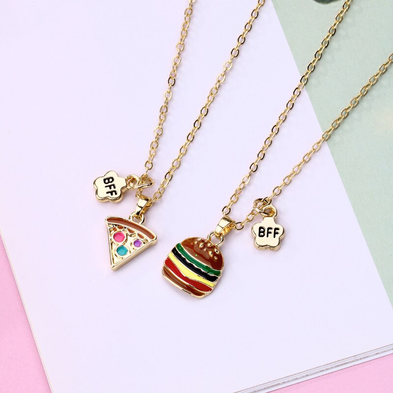 Adoráveis colares da amizade em forma de hambúrguer e pizza!