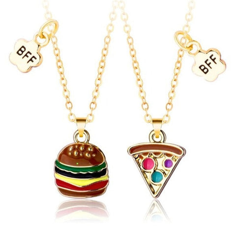 Cria os gémeos mais deliciosos com este conjunto de colares de pizza e hambúrguer para dois melhores amigos que se completam na perfeição. Um presente ideal para dois amantes de comida sempre em movimento.