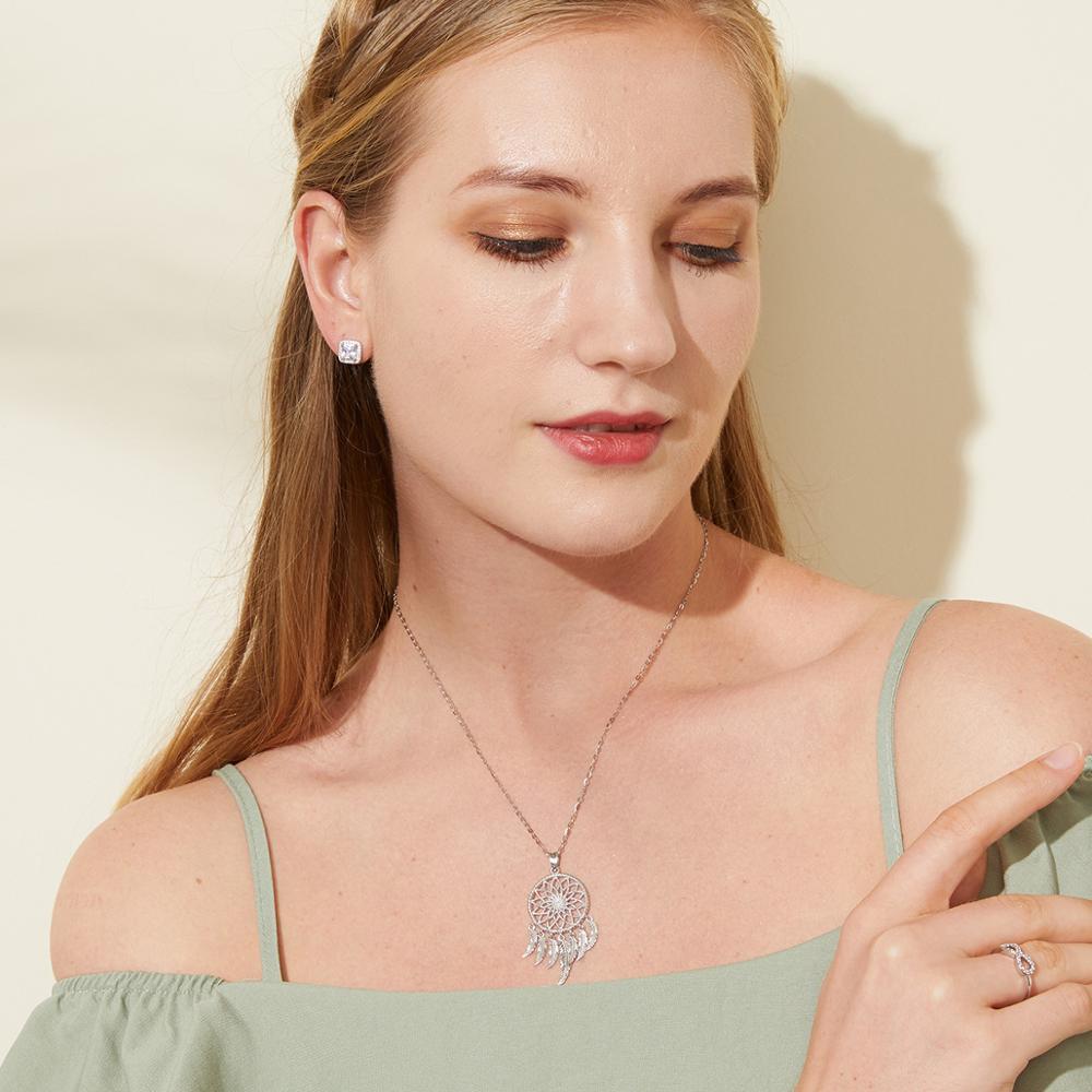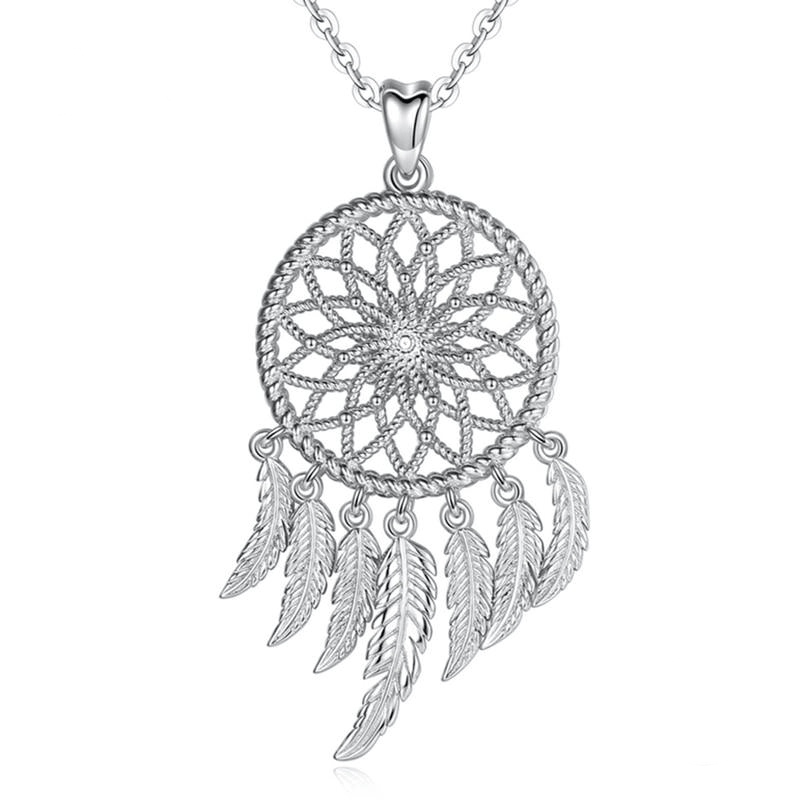 Encantador colar catcher de sonhos em prata com um design luxuoso.