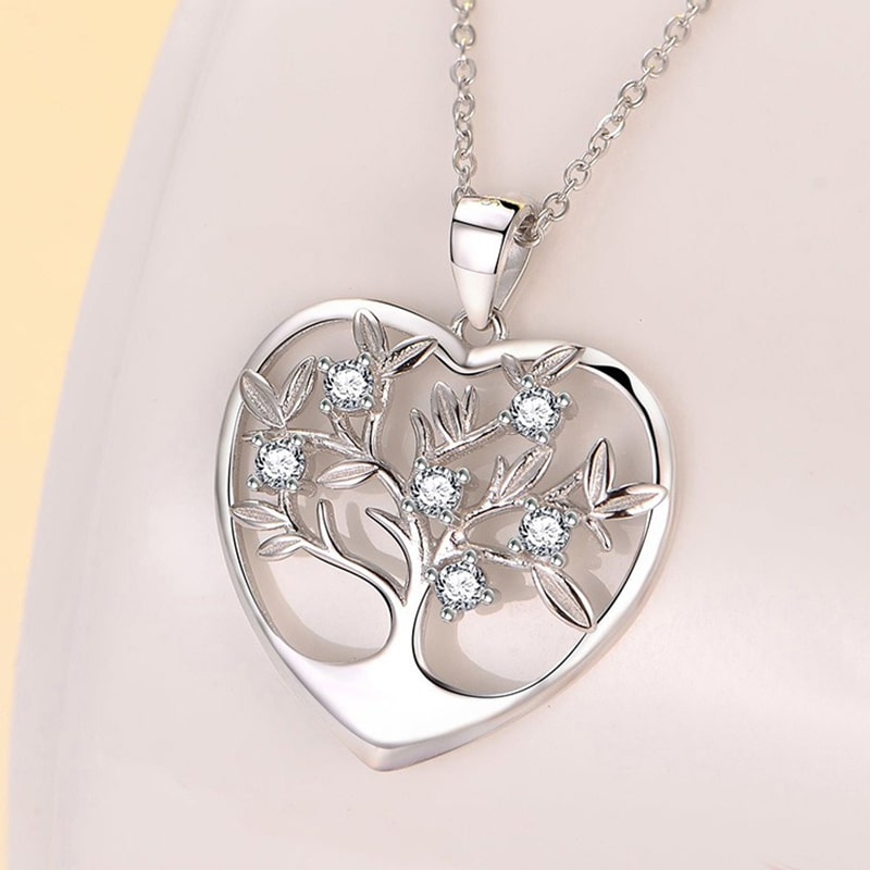 Este bonito colar boémio com motivo da Árvore da Vida é feito de prata pura 925. Representa a Árvore da Vida em forma de coração. As folhas estão decoradas com pequenos e elegantes cristais de zircónia!
