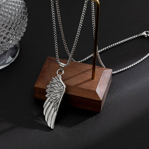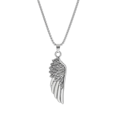 Descubra o deslumbrante colar com pendente de asa de anjo em aço, uma combinação perfeita de elegância moderna e intemporal.