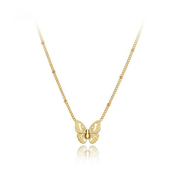 A borboleta dourada no centro do colar apresenta detalhes tão delicados quanto encantadores. Isso confere-lhe um estilo marcante e particularmente sofisticado.