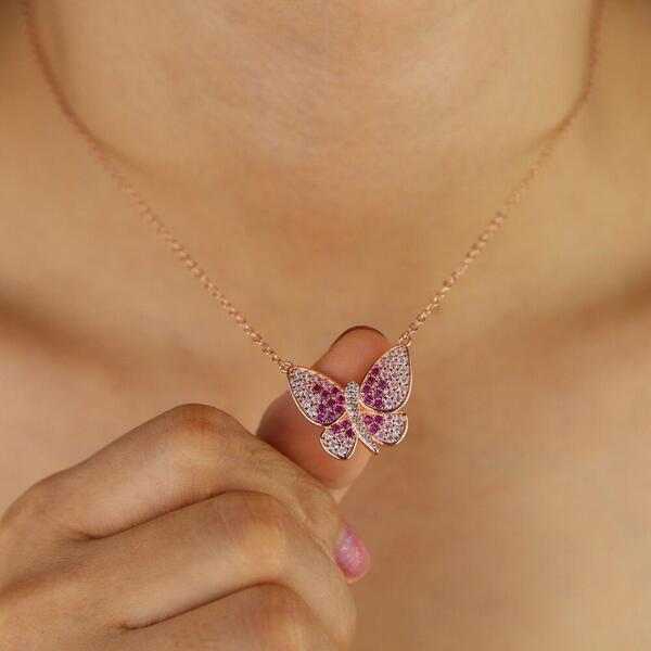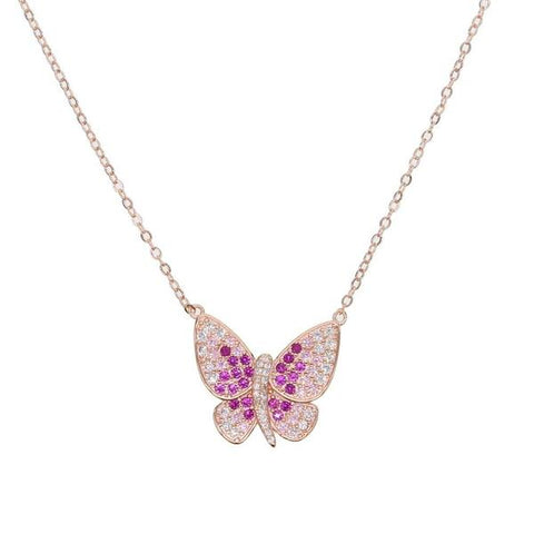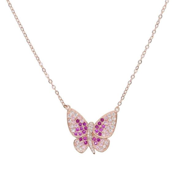Realce a sua feminilidade com este belo conjunto de colar com borboleta adornado com cristais cor-de-rosa.