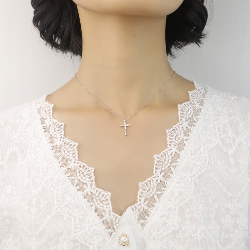 Este colar com corrente em cruz é perfeito à volta do pescoço