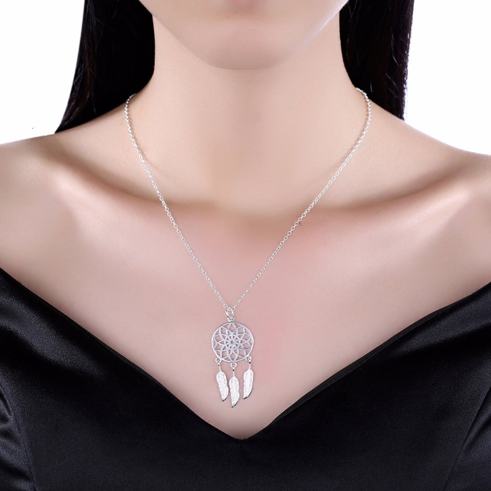 Colar atrativo com apanhador de sonhos, com um design simples.