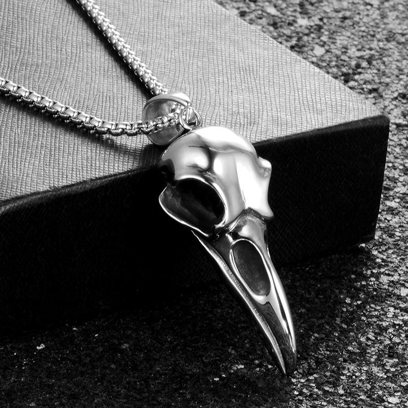 Deslumbrante pendente de Caveira de Corvo em aço inoxidável 316L, ideal para todos os amantes da moda gótica, rock e punk.