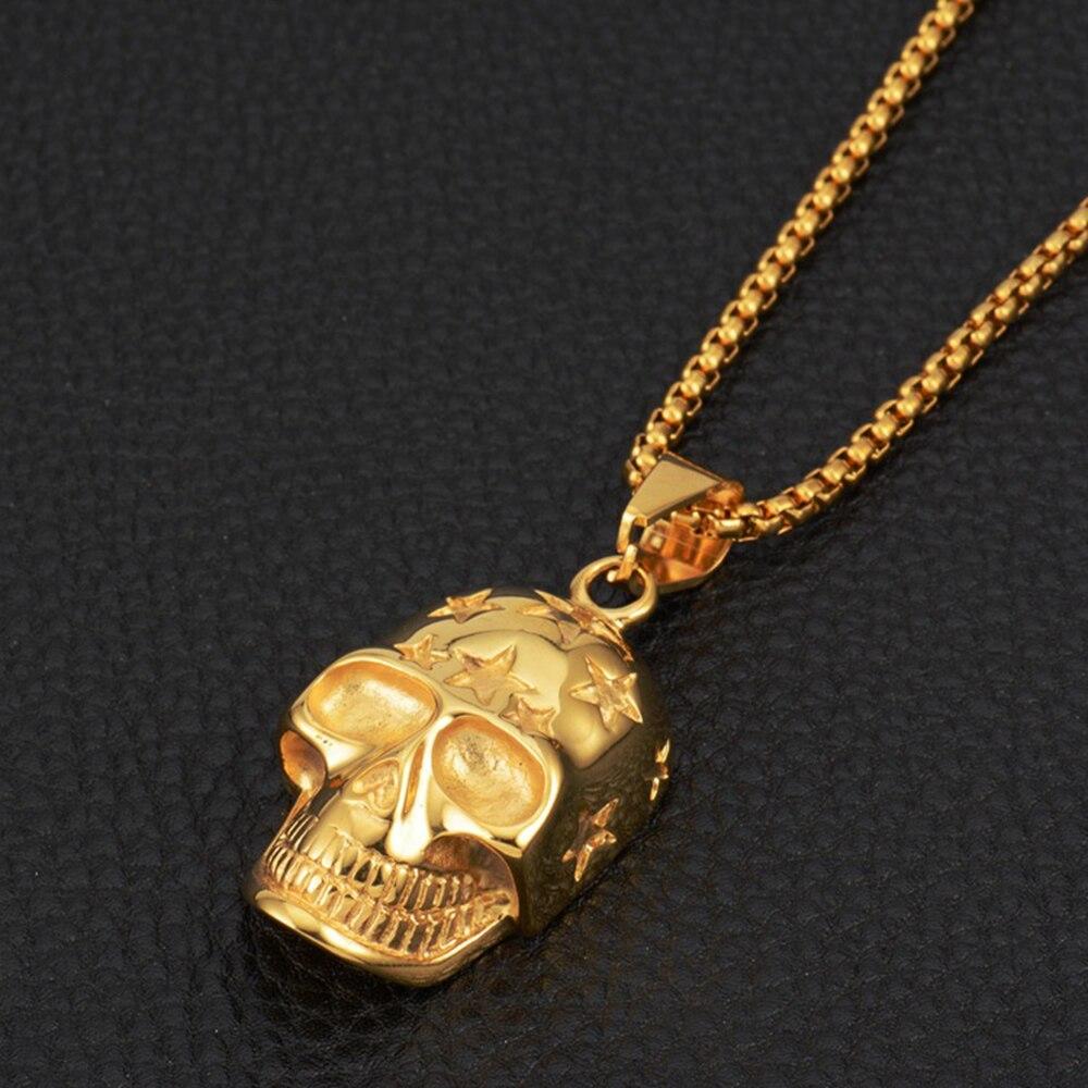 Deixe-se seduzir pelo nosso colar com pendente de caveira, a tendência máxima da moda masculina. Esta peça deslumbrante foi concebida pela nossa equipa criativa.