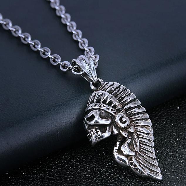 És fã de produtos indígenas ou conhecedor da cultura indígena? Então este colar com pendente de caveira indígena é para ti! Representa a cabeça de um índio com cocar.