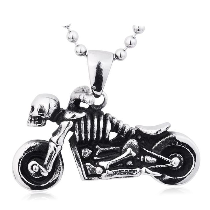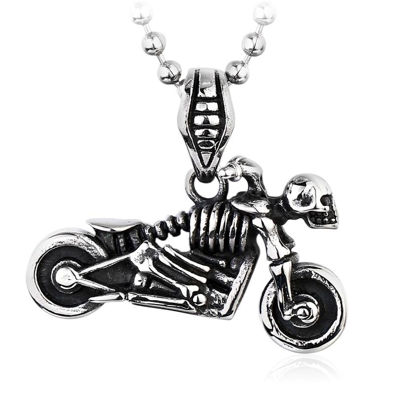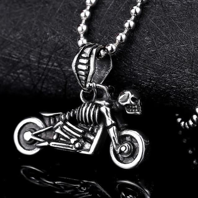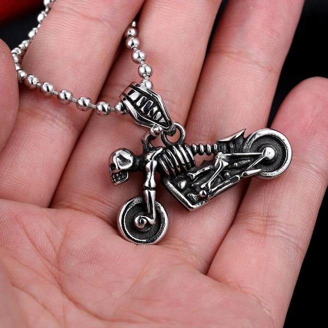 Este colar de mota é a combinação perfeita entre motocicleta e caveira com ossos cruzados – um conceito original e único que vai encantar-te!